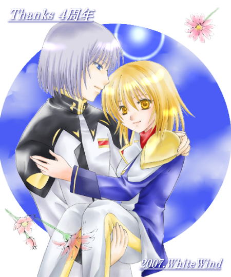 ガンダムSEEDはイザークvカガリです♪ にこやかにお姫様抱っこなんてしちゃってますが、 この二人の場合揃って真っ赤になって照れるでしょうかね(笑)。 カガリは「離せバカ恥ずかしいだろ下ろせ〜〜」とか喚き、 イザークは「何で俺がこんな恥ずかしいことを・・・。おい暴れるな!」とか怒鳴りそう。 ※フリー期間は終了しました。