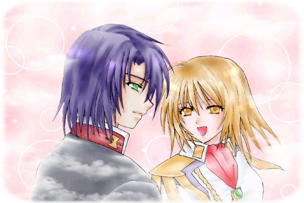 好きCPシリーズ第一弾はアスカガですv 大好きです、このカップリングvv だから背景がピンクでキラキラ(笑)。 いやもう、雑で済みません(滝汗)。 種運命ではアスランが色々と心配されてますが、 カガリ一筋を貫いてくれるものと信じていますっ。 だってアスランが本当に安らげるのはカガリの傍だけですからっ。 04.10.20 up. ブラウザのバック推奨