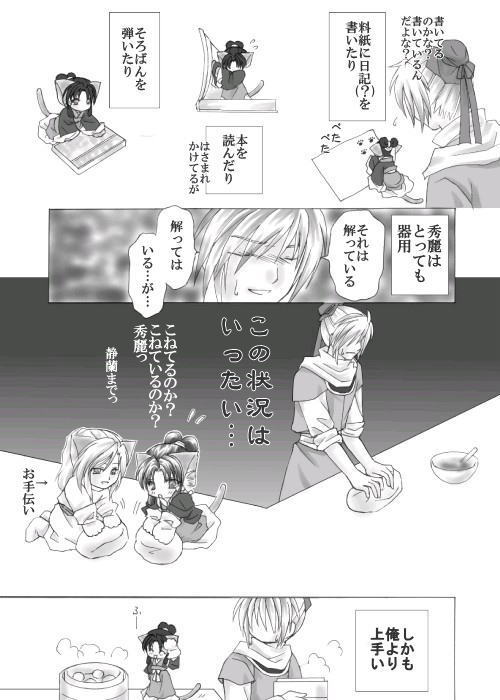 秀麗と静蘭は毛が入らないように手袋着用(笑)。